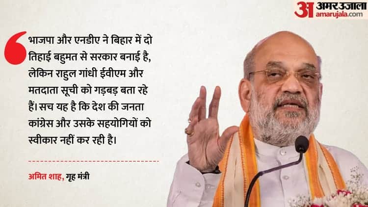 Shah took aim at opposition leader Rahul Gandhi’s allegations regarding voter lists and EVMs. He said that even though BJP and NDA allies have formed the government in Bihar with two-thirds majority, Rahul Gandhi is saying there are irregularities in EVMs and voter lists. The truth is that the people of the country are not accepting the Congress and its alliance partners.