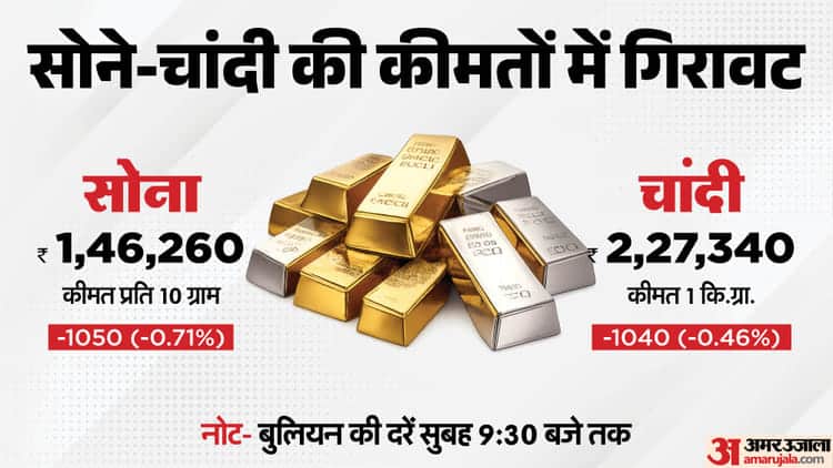 Today’s Gold and Silver Rate: Amid the ongoing tension in West Asia, there was a fall in the prices of gold and silver on bullion on Monday. The price of silver fell by Rs 1040 to Rs 2.27 lakh per kg. Whereas the price of gold fell by Rs 1050 to Rs 1.46 lakh per 10 grams.
