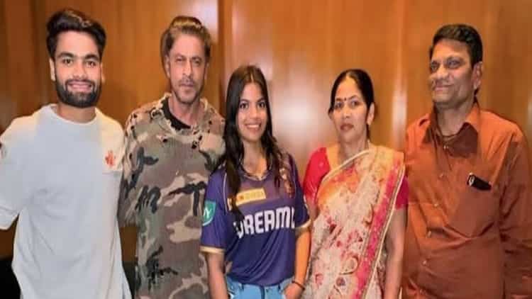 Cricketer Rinku Singh’s family with Shahrukh Khan. father (right) sister, file pic